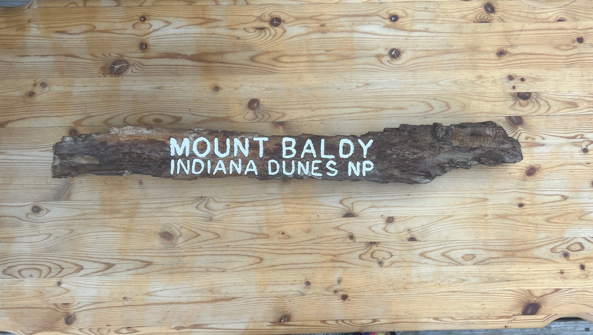 This sign is 30” x 4” which is not quite as high as the 126 feet of sand that makes up Mount Baldy. Made on Indiana Dunes driftwood which if you smoke it, will also not get you very high. But it is a fun commemorative sign!