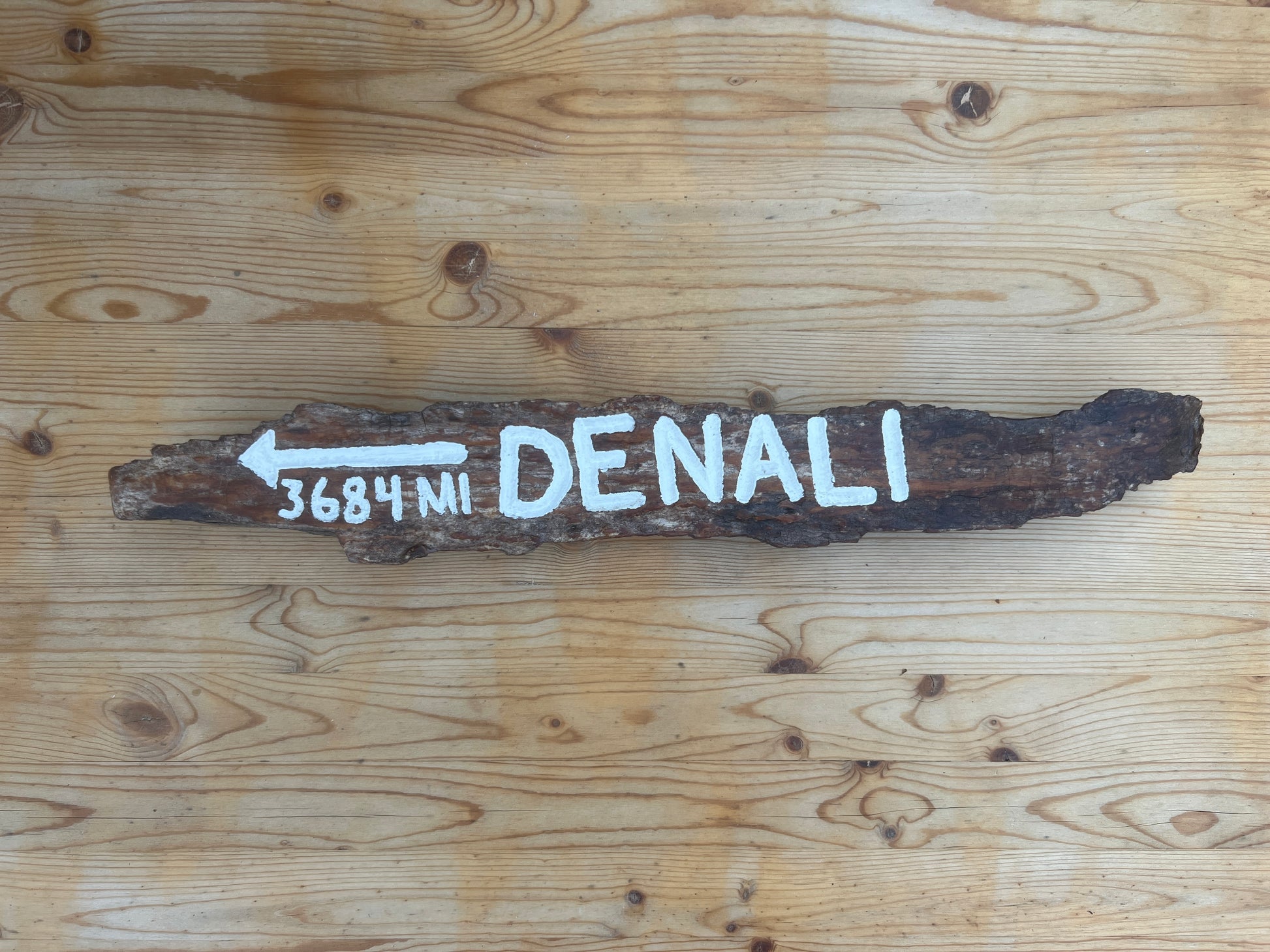 From the Indiana Dunes national park to Denali National Park is a long way. Denali is also a lot taller than Mount Baldy (Indiana Dunes Mount Baldy = 126 feet, Denali = 20,310 feet, but who’s counting?). This sign only measures 19” x 3” and is made on Alaskan driftwood from Lake Clark.